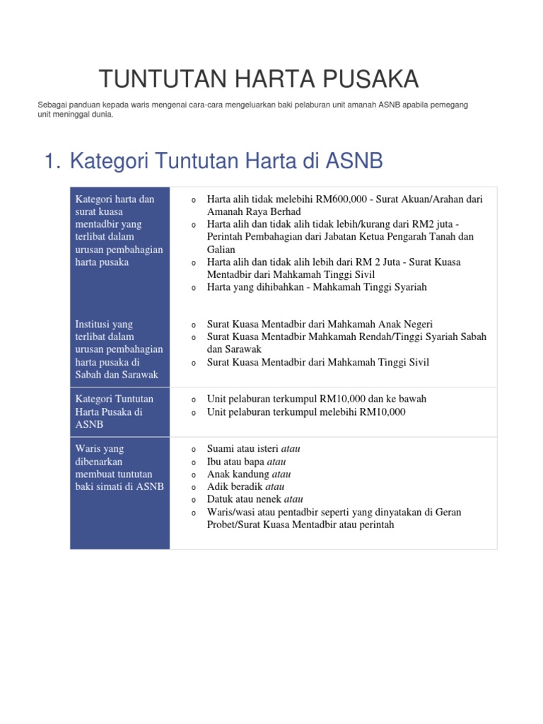 Tuntutan Harta Pusaka Asnb