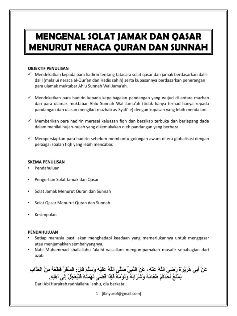Menurut kenyataan imam nawawi ini tempoh seseorang itu mendapat status mukim ialah empat hari. Simak ulasan tentang sholat bagi musafir sholat qashar niat sholat qashar sholat jamak dan niat sholat jamak pada artikel ini. Sebelum memberikan periciannya pendakwah dan penulis ustaz mustafar mohd suki memberikan penjelasan tentang hukum solat jamak dan qasar bagi mereka yang jauh balik beraya di kampung. Ini kerana qasar adalah keringanan yang disyariatkan untuk menunaikan sesuatu tanggungjawab dan ia tidak boleh terkait dengan sebarang maksiat.