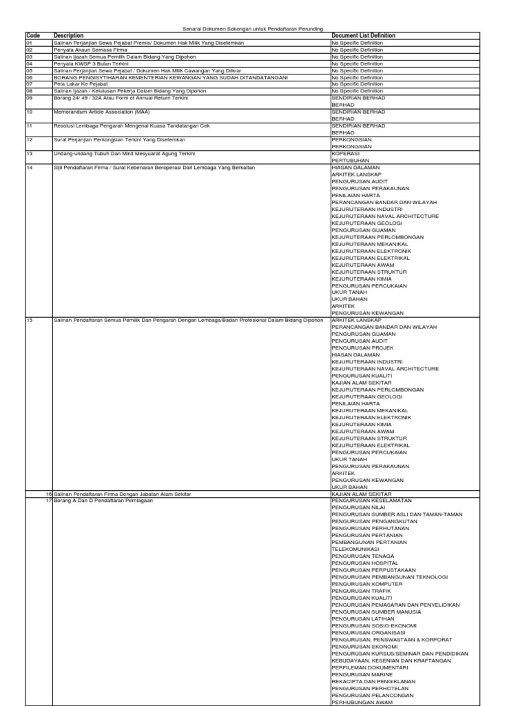 Senarai Dokumen Sokongan Untuk Pendaftaran Pembekal Kementerian Kewangan Supporting Document For Contractor