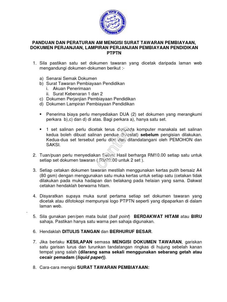 Peraturan Am Mengisi Dokumen Perjanjian Pinjaman Ptptn