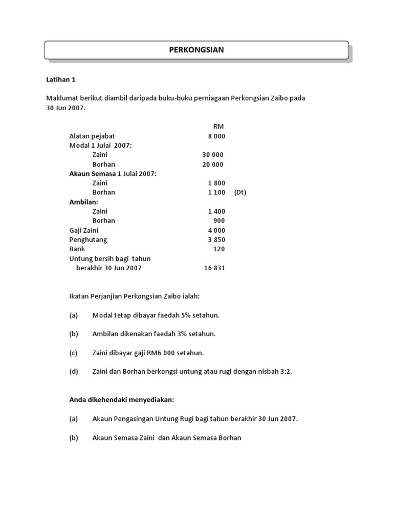 Pengasingan Untung Rugi Dan Akaun Semasa Perkongsian Latihan