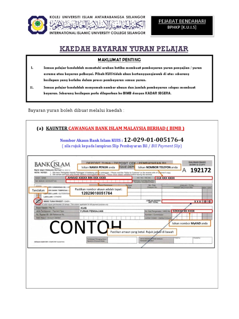 Panduan Pembayaran Slip Pembayaran Bank Mestilah Mempunyai Cetakan Komputer Kolej Pdf Document