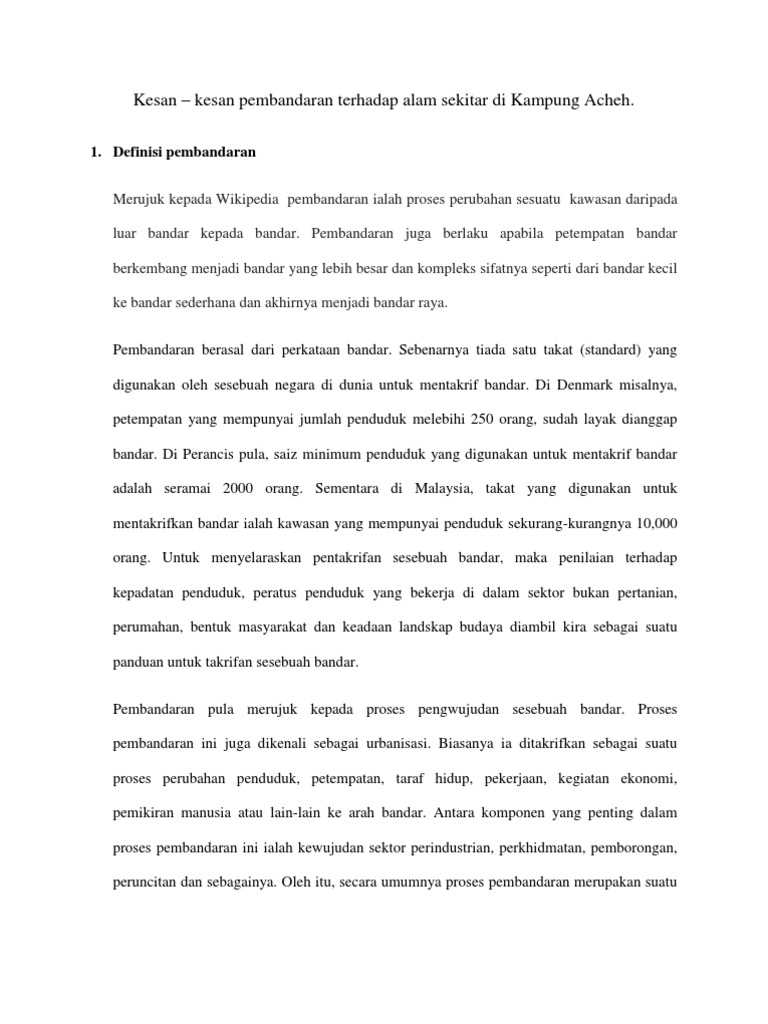 Contoh Pendahuluan Kerja Kursus Geografi Petempatan