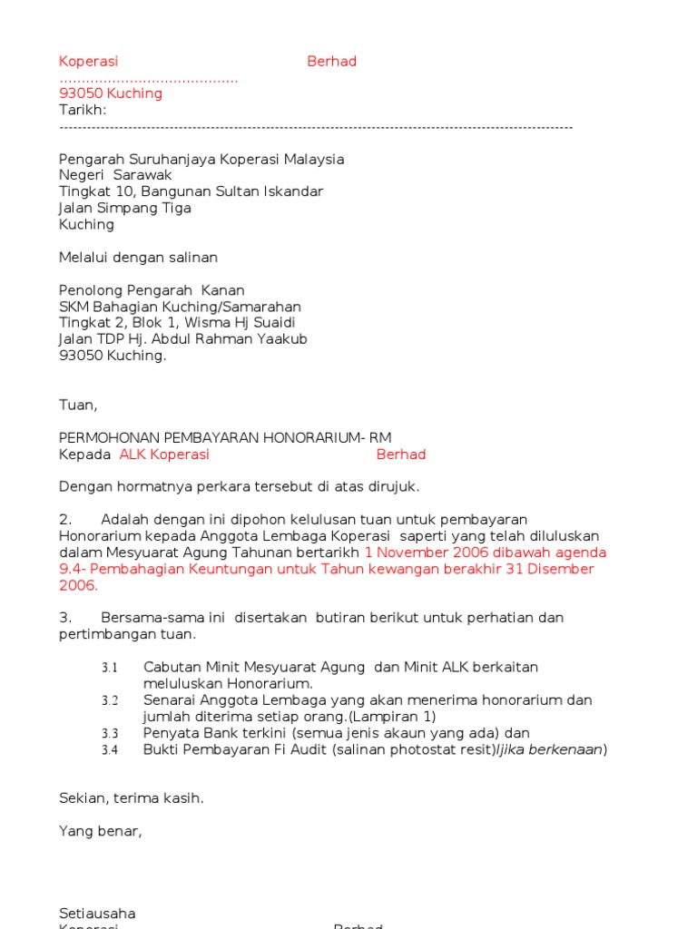 Contoh Mohon Honorarium Kop