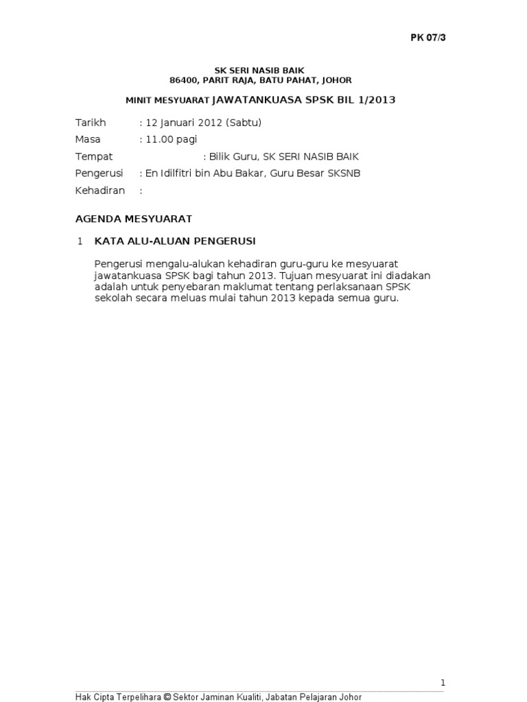 Doc Contoh Format Minit Mesyuarat Wawa Wawa Academia Edu