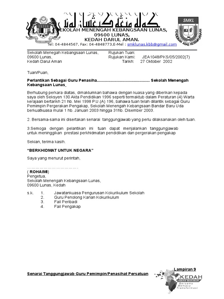 Kpa Surat Perlantikan Guru Penasihat Kelab Pencinta Alam 2012