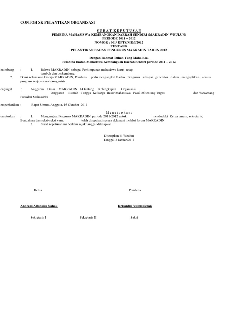 Doc Contoh Surat Permohonan Sk Susunan Pengurus Nurhadi Sulistyo Academia Edu