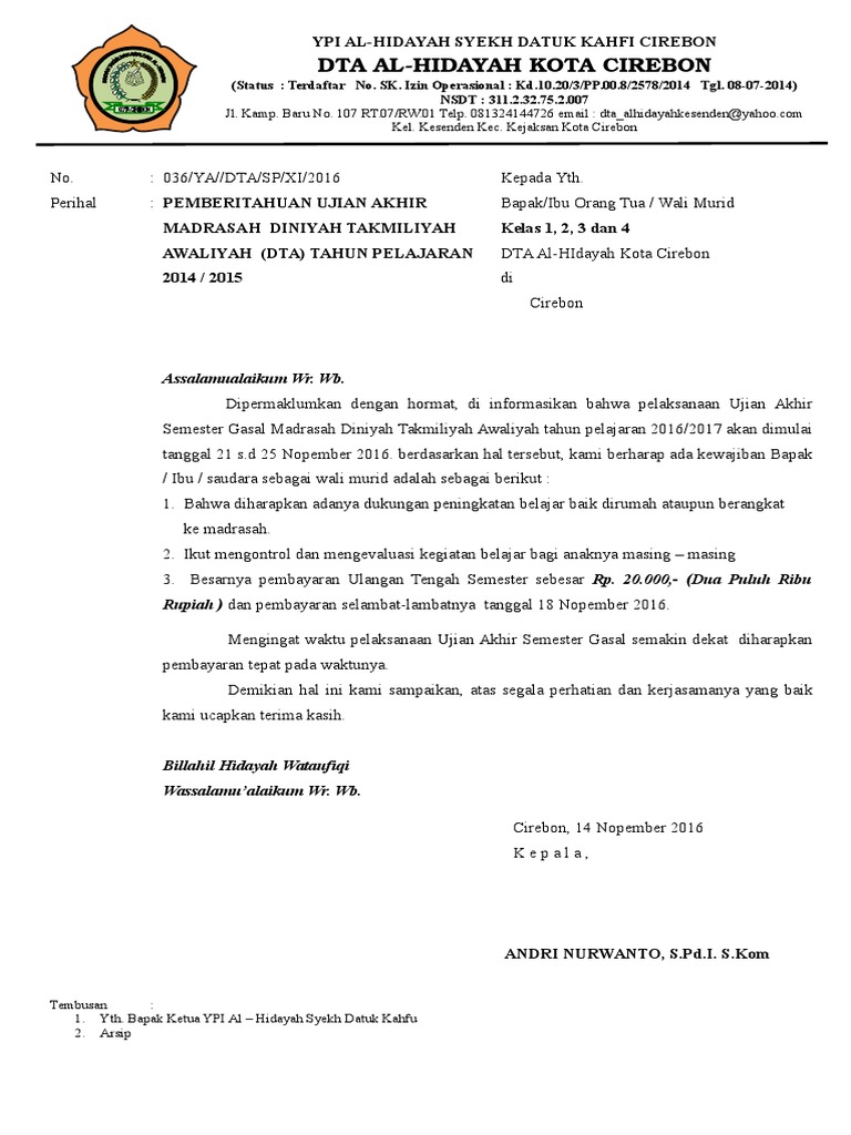Inspirasi Contoh Surat Pemberitahuan Pembayaran Pondok Pesantren Paling Seru
