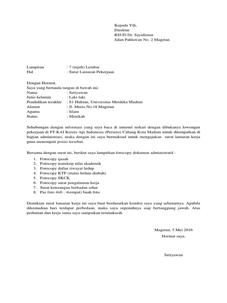 Contoh Surat Lamaran Kerja Berdasarkan Informasi Dari Radio Kraksaan