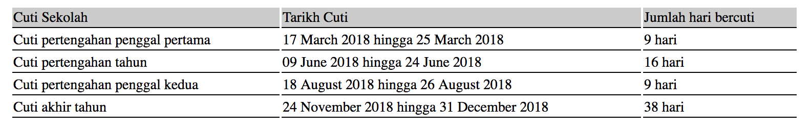 Kalendar Cuti Sekolah Dan Cuti Umum 2018
