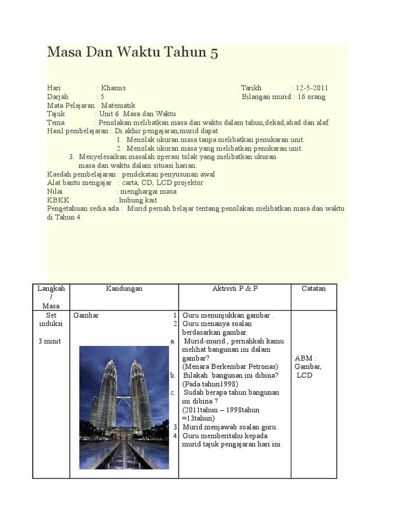 195188168 Contoh Rph Kssr Matematik Tahun 4 Masa Waktu