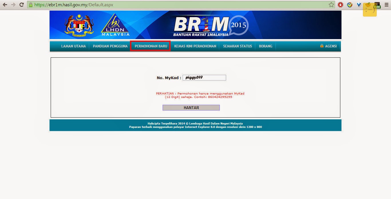 Borang Permohonan Br1m 2015 Online Ebr1m Hasil Gov My Malaysia