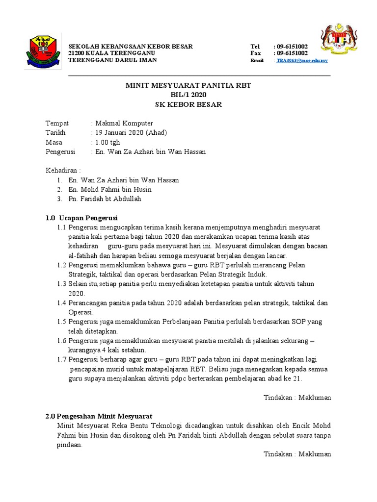 Minit Mesyuarat Pengurusan Pentadbiran 2020 Bil 1 2020 Pages 1 12 Text Version Anyflip