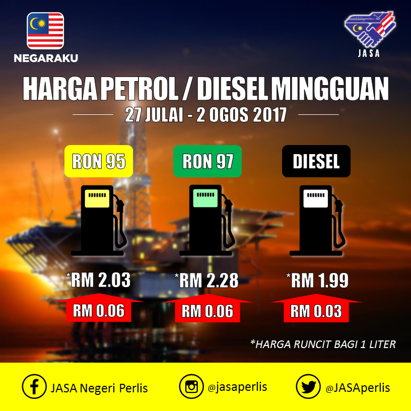 Harga Minyak Malaysia Petrol Price Ron 95 Rm2 03 97 Rm2 28 Amp Diesel Rm1 99 27 July 2 August 2017 Harga Runtuh Durian Runtuh
